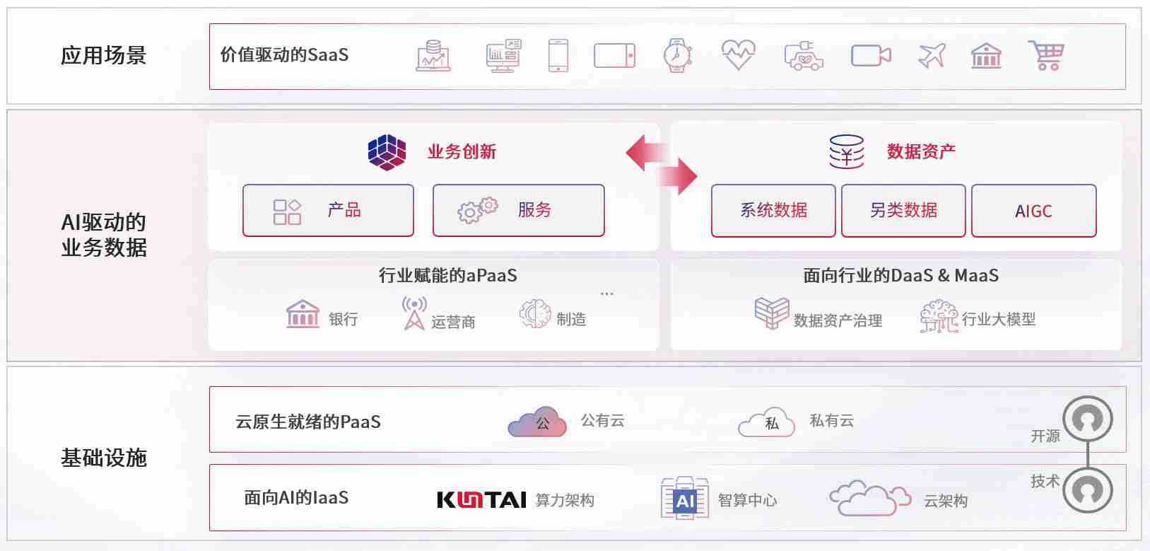 数字时代,,,,围绕企业数字化转型的关键要素,,z6尊龙数码开创性的提出数云融合战略和技术体系框架,,,着力在云原生、、、数字原生、、AI原生和信创产业上架构产品和服务能力,,为处在不同数字化转型阶段的快消零售、、、、汽车、、金融、、、医疗、、政企、、、、教育、、、、运营商等行业客户提供泛在的敏捷IT能力和融合的数据驱动能力,,构建跨界融合创新的数字业务场景和新业务模式,,助力企业级客户建立面向未来的核心能力和竞争优势,,全面推动社会的数字化、、、、智能化转型升级。。。