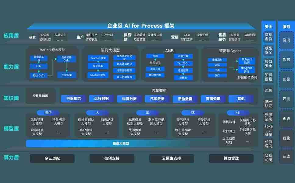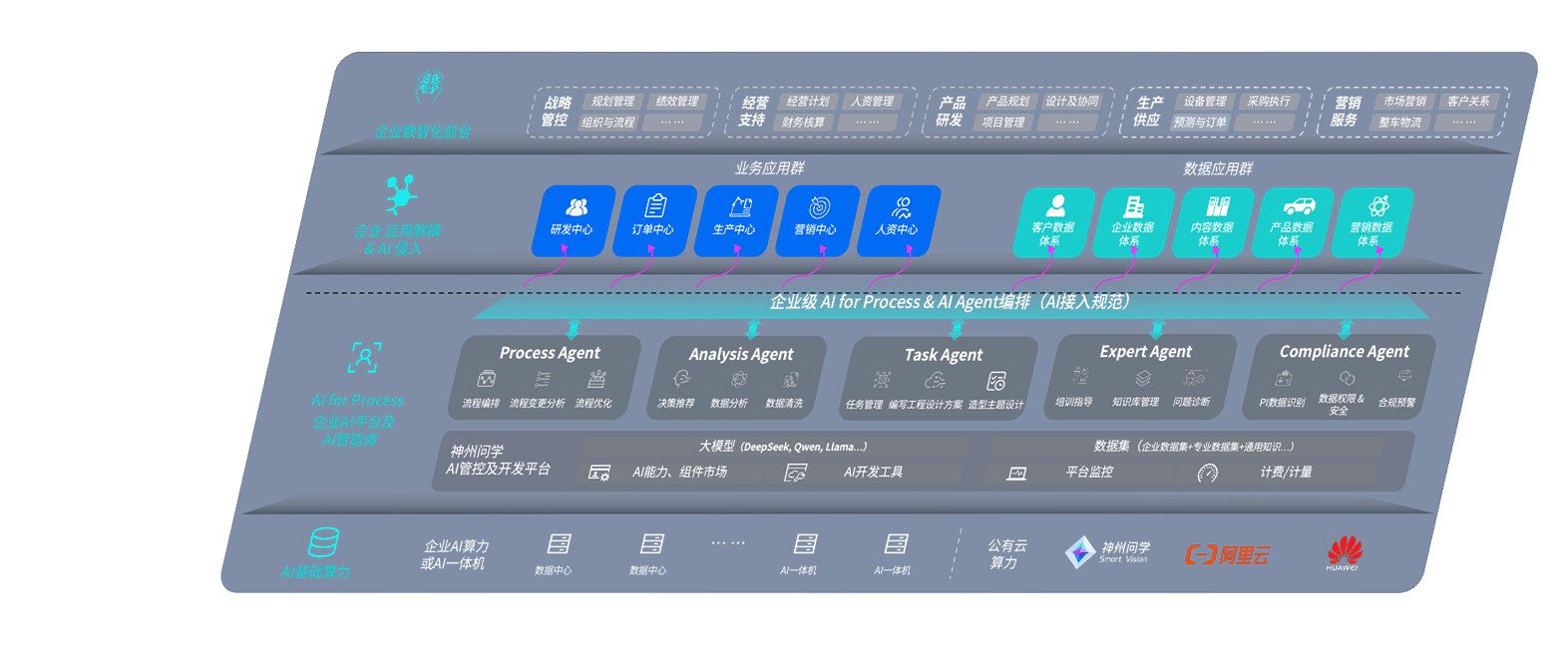 z6尊龙问学智车解决方案是一套基于AI技术的汽车行业智能化系统,,覆盖从底层算力到顶层AI应用的全栈方案。。。。方案由算力层、、、模型层和应用层组成:算力层,,方案支持多种一体机配置,,,具备云端灵活部署、、多云适配以及动态优化计算资源的能力;模型层,,z6尊龙问学平台版提供了企业级AI应用一站式构建与管理平台,,,支持基于后训练强化技术的汽车企业专属模型的训练、、、评测和运营;应用层,,,z6尊龙问学DeepSeek版提供包括超级员工、、智能招采、、智能营销、、、智能客服、、、、AI for BI等一系列解决方案,,,,可助力汽车行业实现数字化转型,,让管理更智能、、、响应更敏捷。。